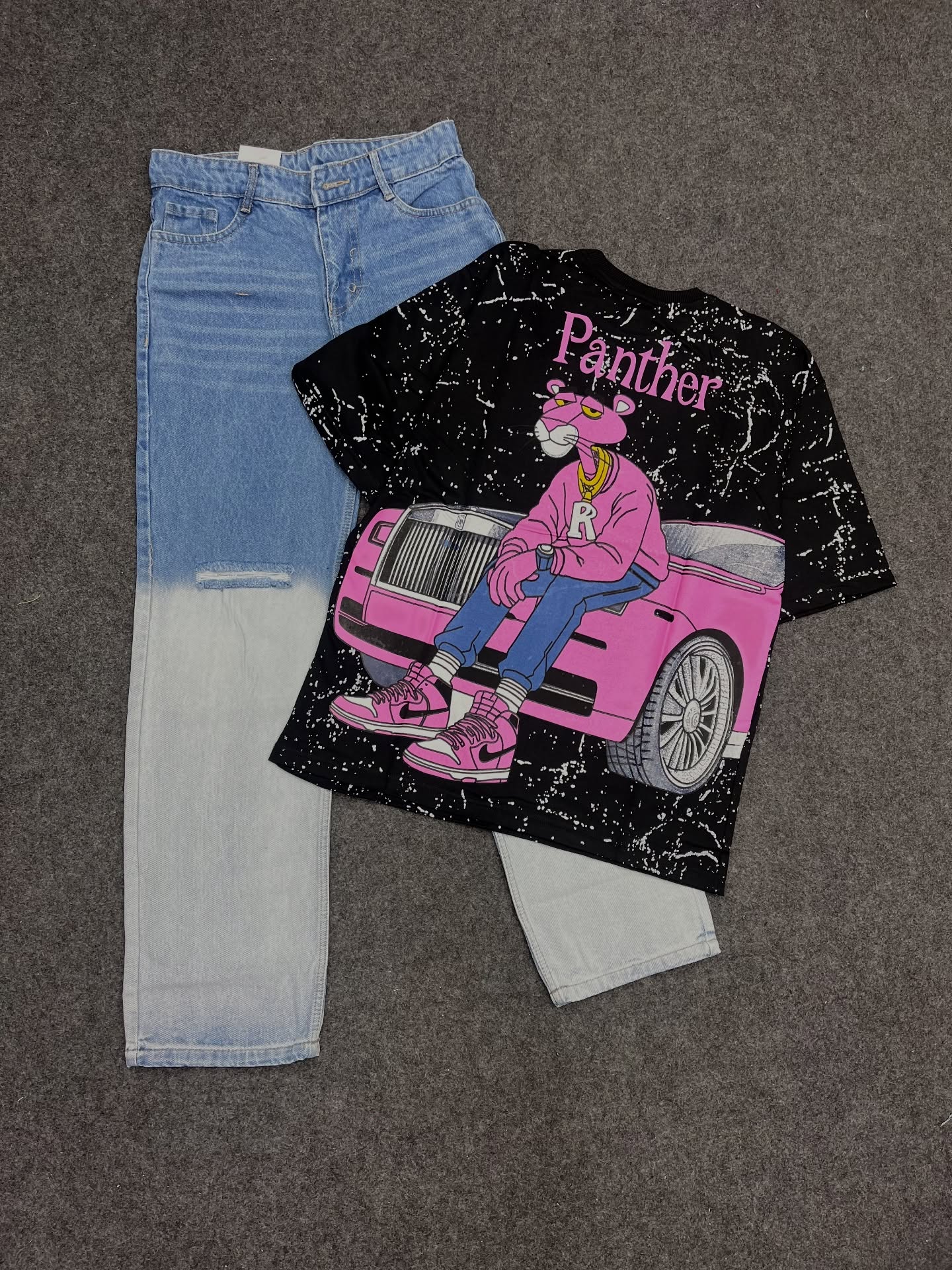 Be the first to review “πŸ€πŸ–€ White Pink Panther Graphic T-Shirt & Black Faded Wide-Leg Jeans – Playful Street Style Meets Edgy Comfort πŸ–€πŸ€”