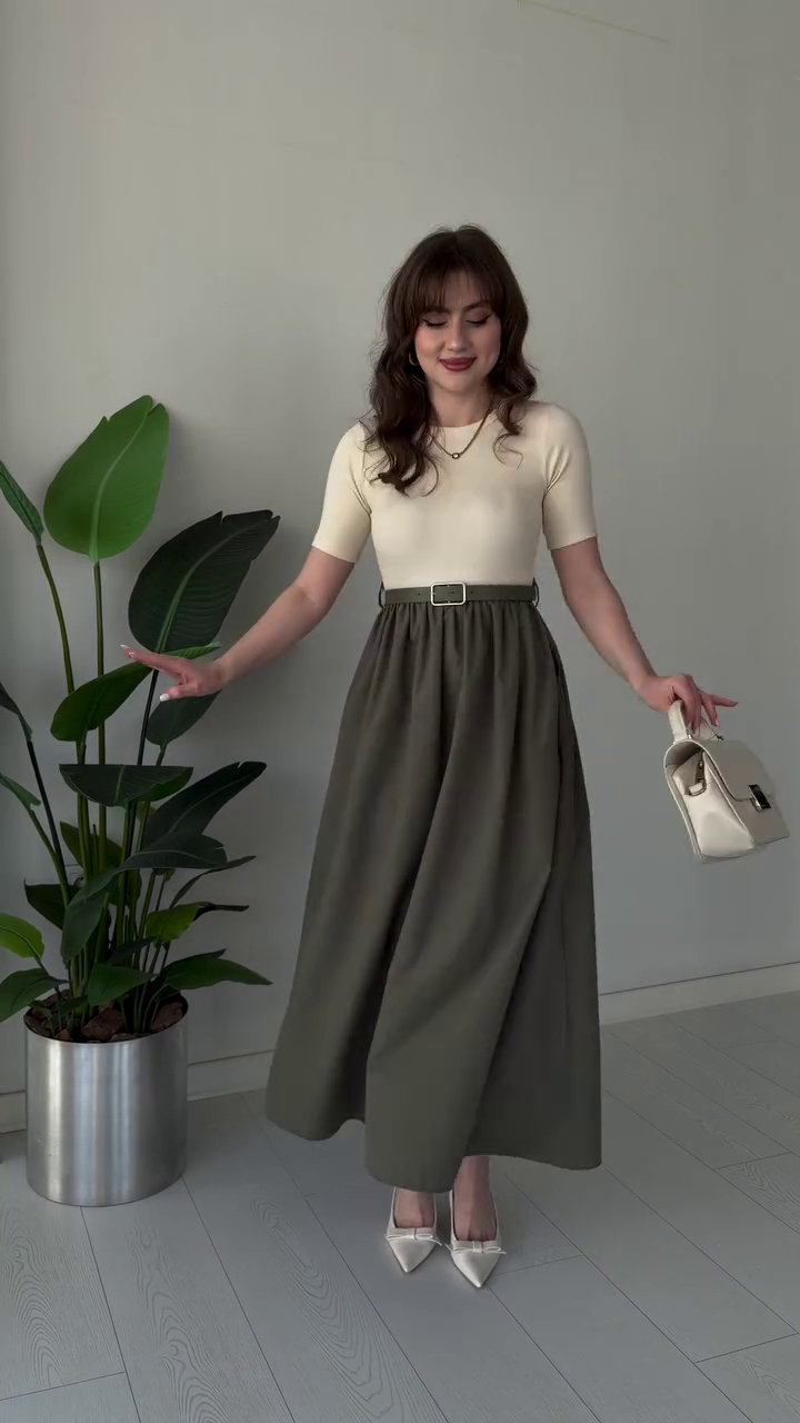 The highlight of this design is the elegant waist belt with a chic buckle detail, perfectly cinching the waist to enhance your natural curves while maintaining all-day comfort. The flowing A-line skirt adds movement and grace to every step, giving you that confident, feminine charm 💃.