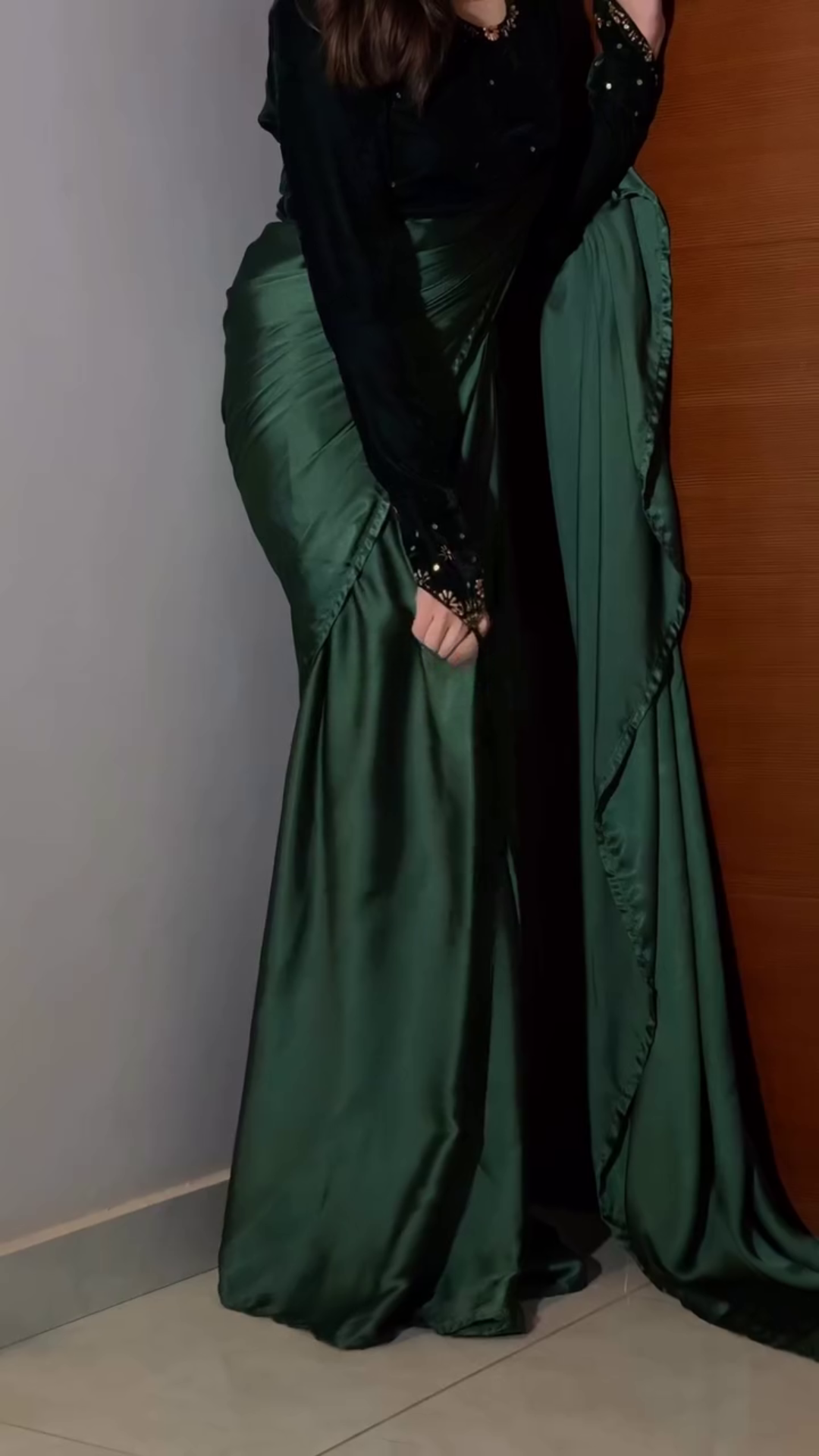 Paired effortlessly with traditional jewelry — such as statement necklaces, chandelier earrings, and embellished bangles — this velvet saree creates a complete, head-turning ensemble. The plush fabric beautifully hugs your silhouette while providing comfortable movement, making it ideal for long events where you want to feel at ease yet impeccably styled.