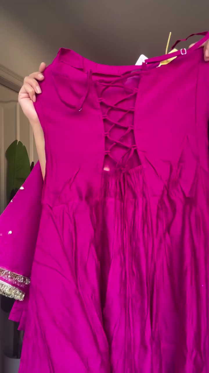 Be the first to review “Festive Wear Fits β Part 12 | Fuchsia Lace-Up Anarkali Kurta π«” Cancel reply