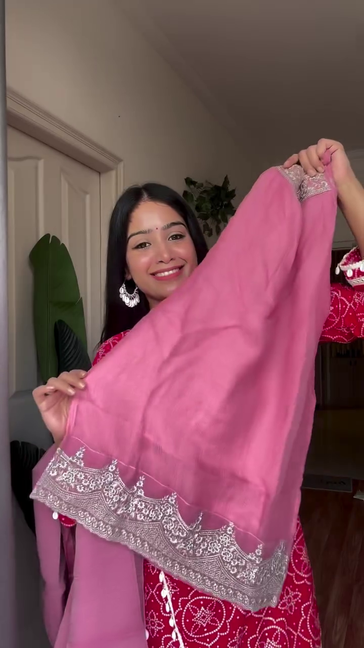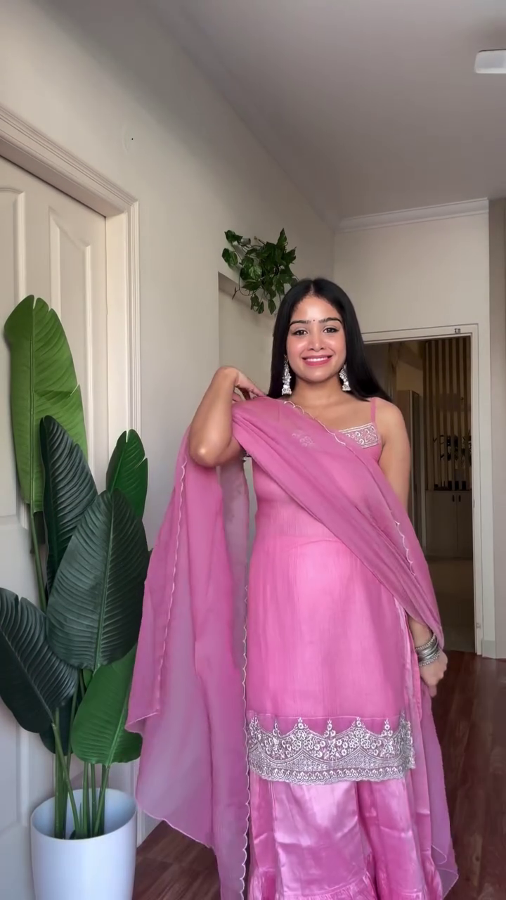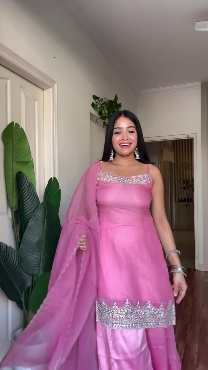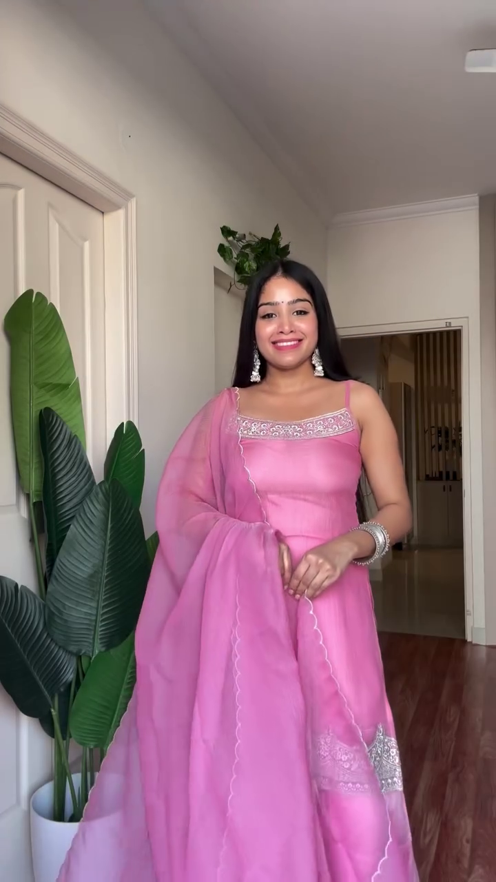 This vibrant pink Anarkali comes with a lace-up detail at the back, adding a modern twist to traditional elegance. The flowy silhouette and premium fabric ensure comfort while twirling, making it perfect for Diwali parties, weddings, or family gatherings.