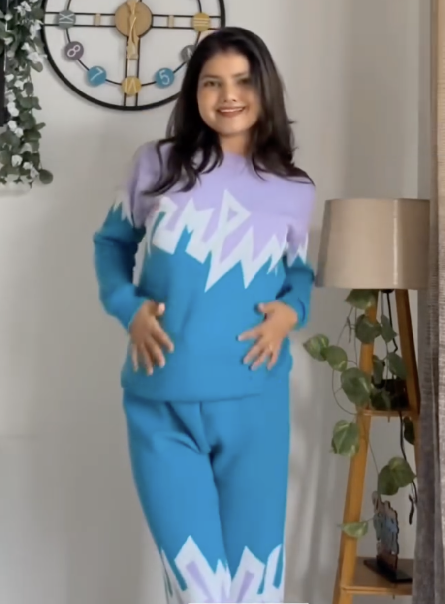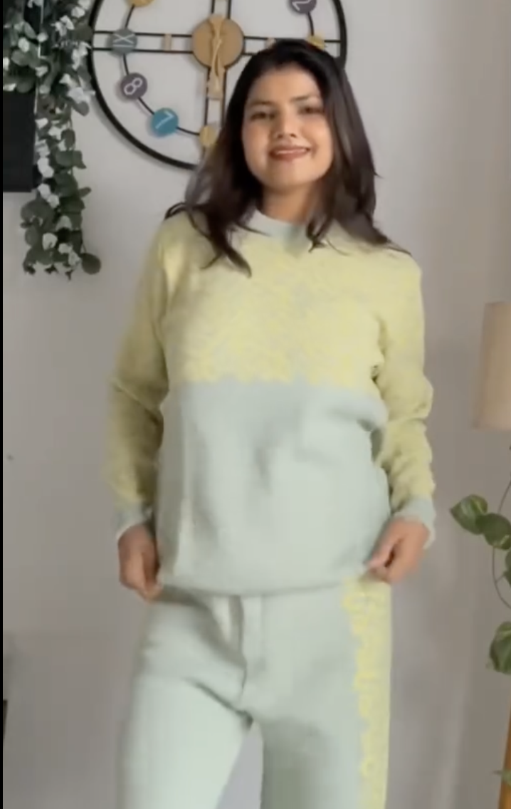 Crafted from high-quality woolen or wool-blend fabric, this co-ord set provides exceptional insulation to keep you cozy during cooler months. Its natural breathability ensures you stay comfortable, whether you’re relaxing indoors or stepping out for a casual gathering. The full-sleeve top and coordinating bottoms are designed for a flattering and comfortable fit, allowing for easy movement throughout the day. The calming lavender hue is a fresh and trendy alternative to traditional winter colors, bringing a soft, chic aesthetic to your seasonal attire.
