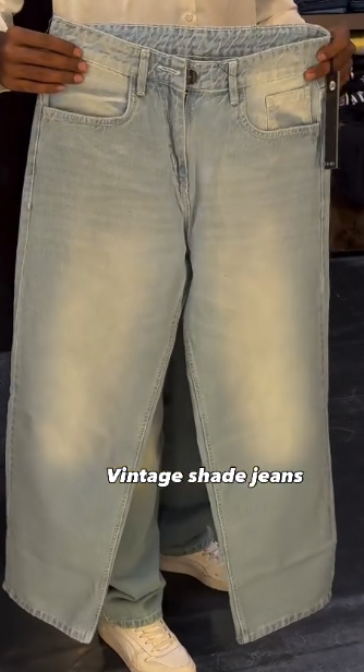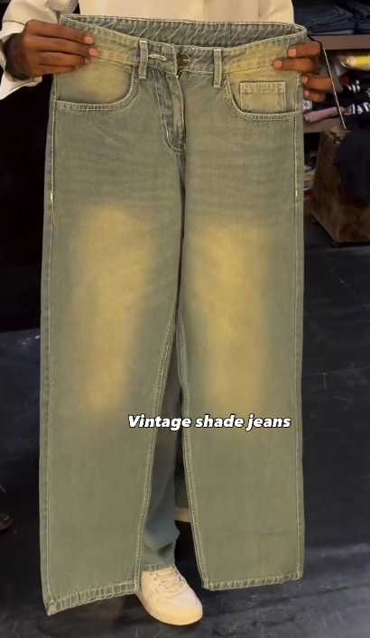 The vintage wash effect is carefully designed to create subtle fades and warm undertones, giving the denim a nostalgic, worn-in appeal. The yellowish tint blended with blue adds depth and uniqueness, making each outfit feel effortlessly cool and stylish. This retro finish pairs beautifully with oversized tees, cropped tops, hoodies, shirts, or even layered streetwear looks.