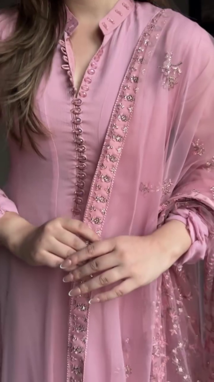 The V-neck kurta features intricate ethnic motif embroidery, adding a subtle yet charming detail to your festive or casual look. Paired with matching trousers and a coordinating dupatta, this ensemble is perfect for office wear, family gatherings, festive celebrations, or casual events.