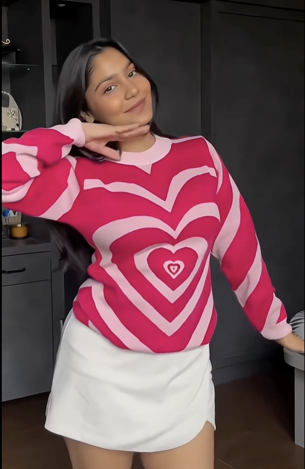 in its special Pink, Blue, and Red Heart Valentine’s Day combo. This isn’t just another knitwear piece; it’s a statement of romance and warmth, designed to make you feel cherished and effortlessly chic. The sweater’s core design features a soft, luxuriously comfortable knit fabric that feels gentle against the skin, making it an ideal choice for both a cozy night in and a special date night out.